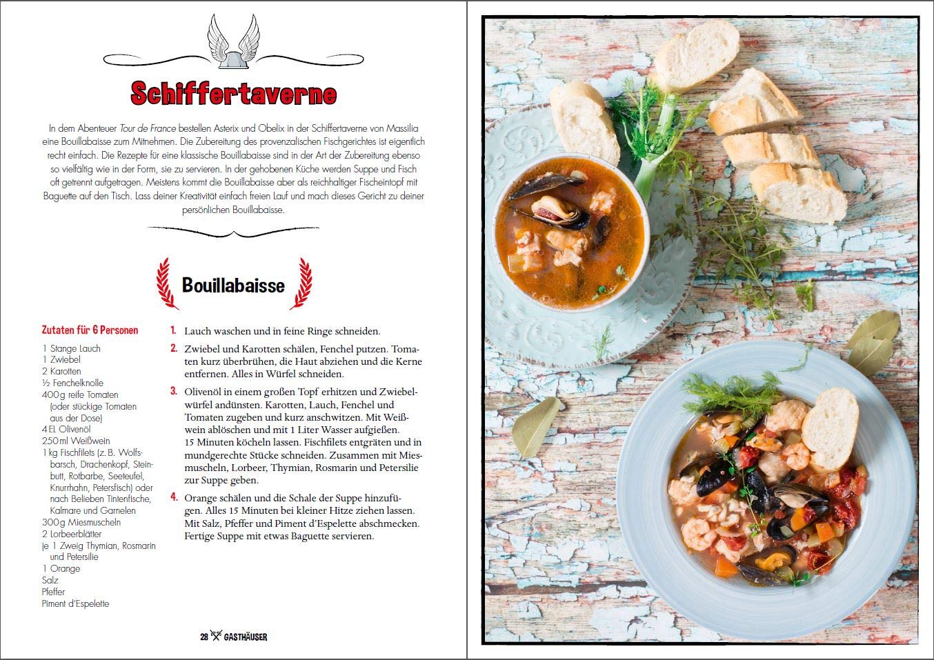 Du willst kochen wie die Gallier? In diesem Buch findest du über 50 Rezepte, die den Helden der Kult-Comics garantiert auch schmecken würden: Schweizer Käsefondue, Wildschwein in Pfefferminzsauce, knusprige Fish and Chips, Miniblinis, orientalischer Orangenkuchen, Zaubertrank für erwachsene Gallier und viele mehr!